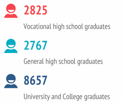 - 47 855 people have secondary education and have finished vocational or general high schools;